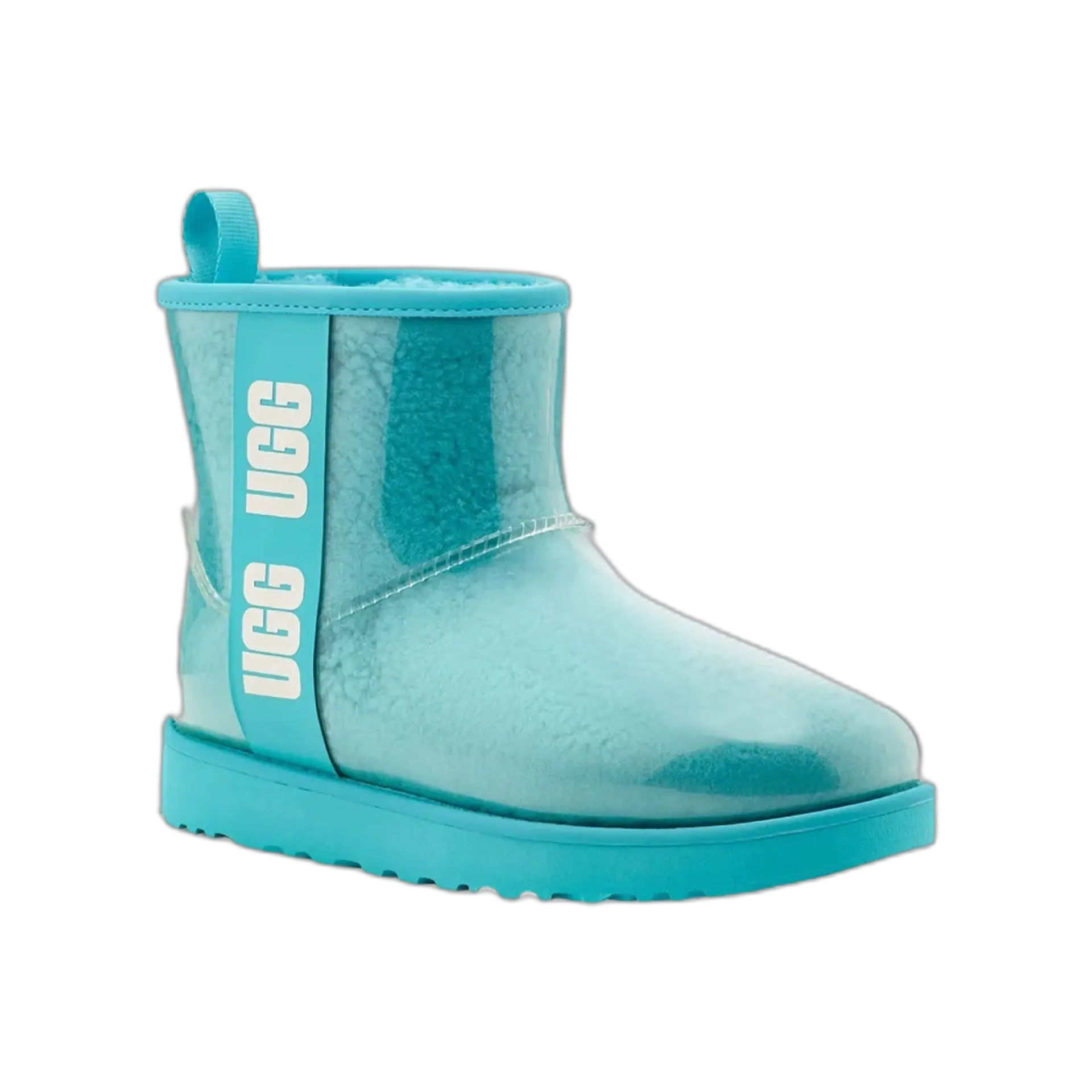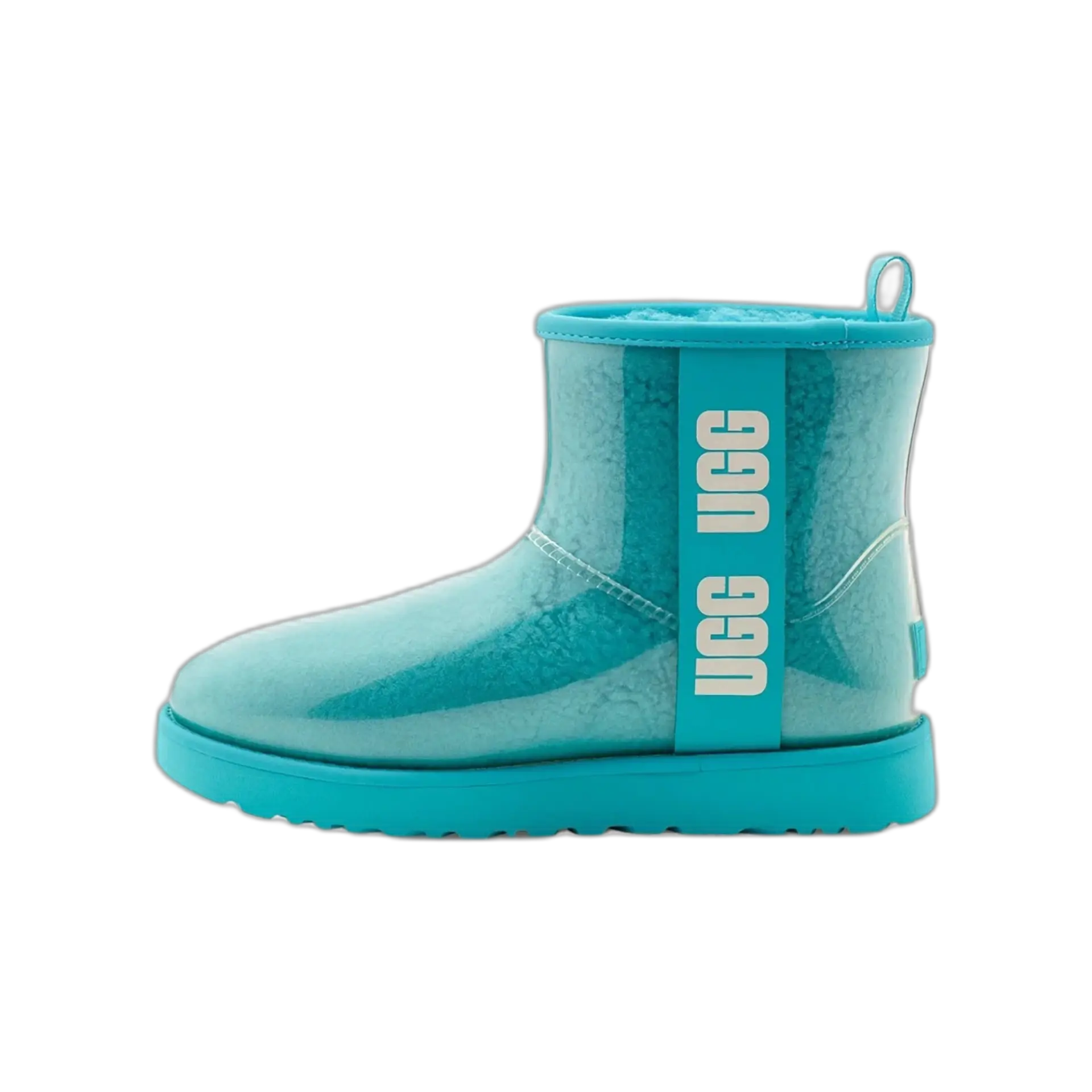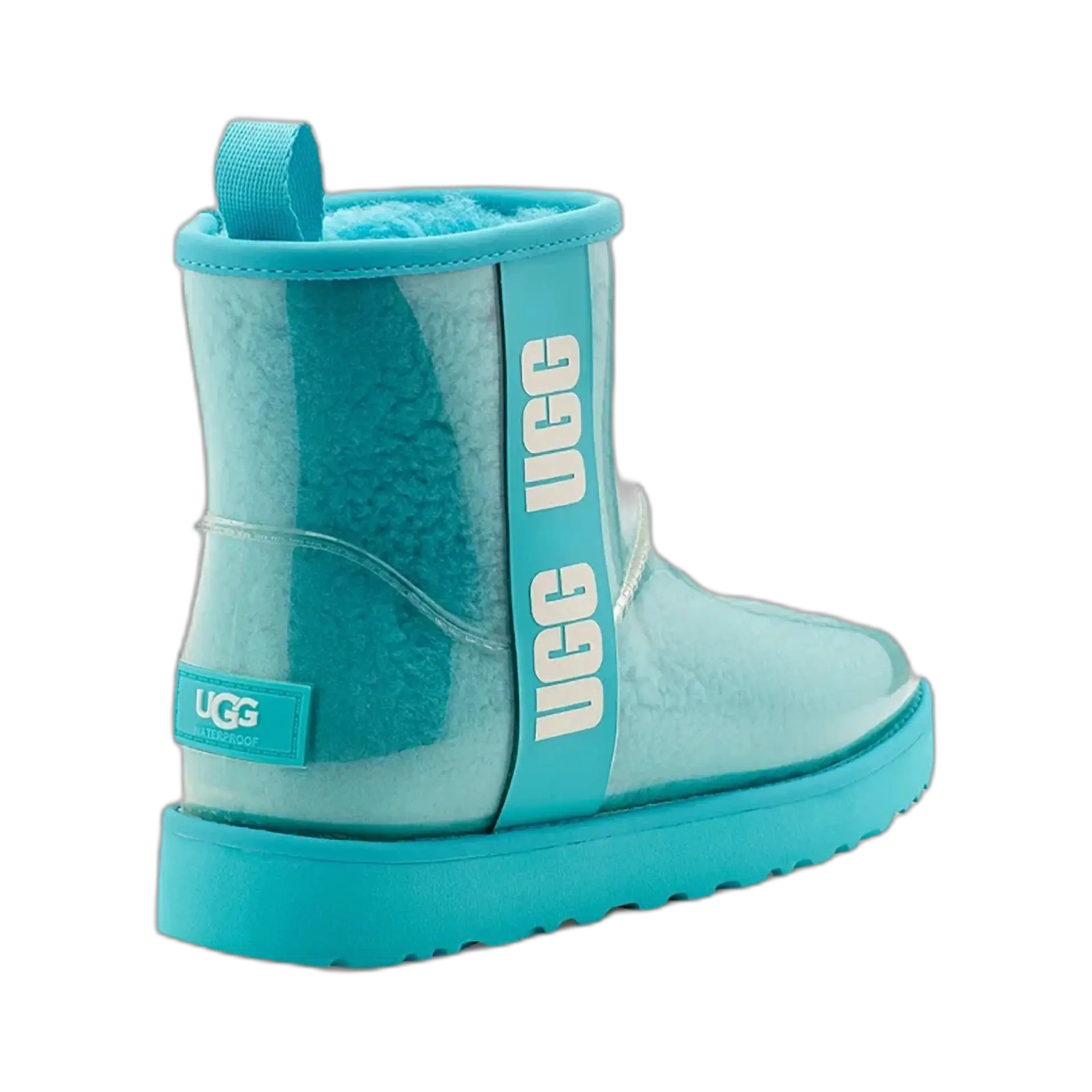 Quand l’iconique UGG rencontre la pluie, ça donne cette botte imperméable au look totalement assumé. L’extérieur en TPU transparent laisse apparaître la doublure laine bouclée ultra-confortable, pour un effet visuel unique. Résistante, chaude, audacieuse : elle traverse l’hiver avec style, que tu sois en ville ou en station.