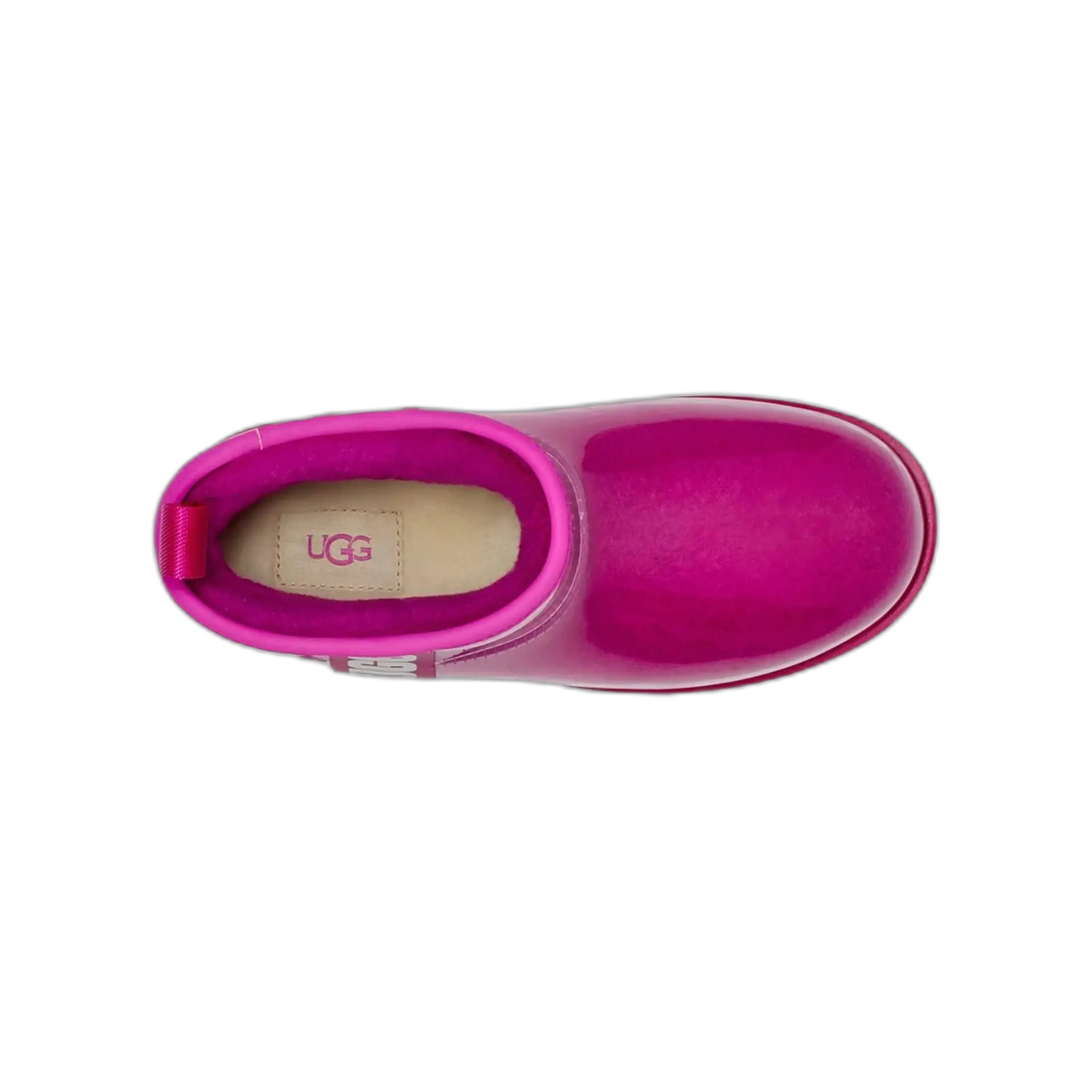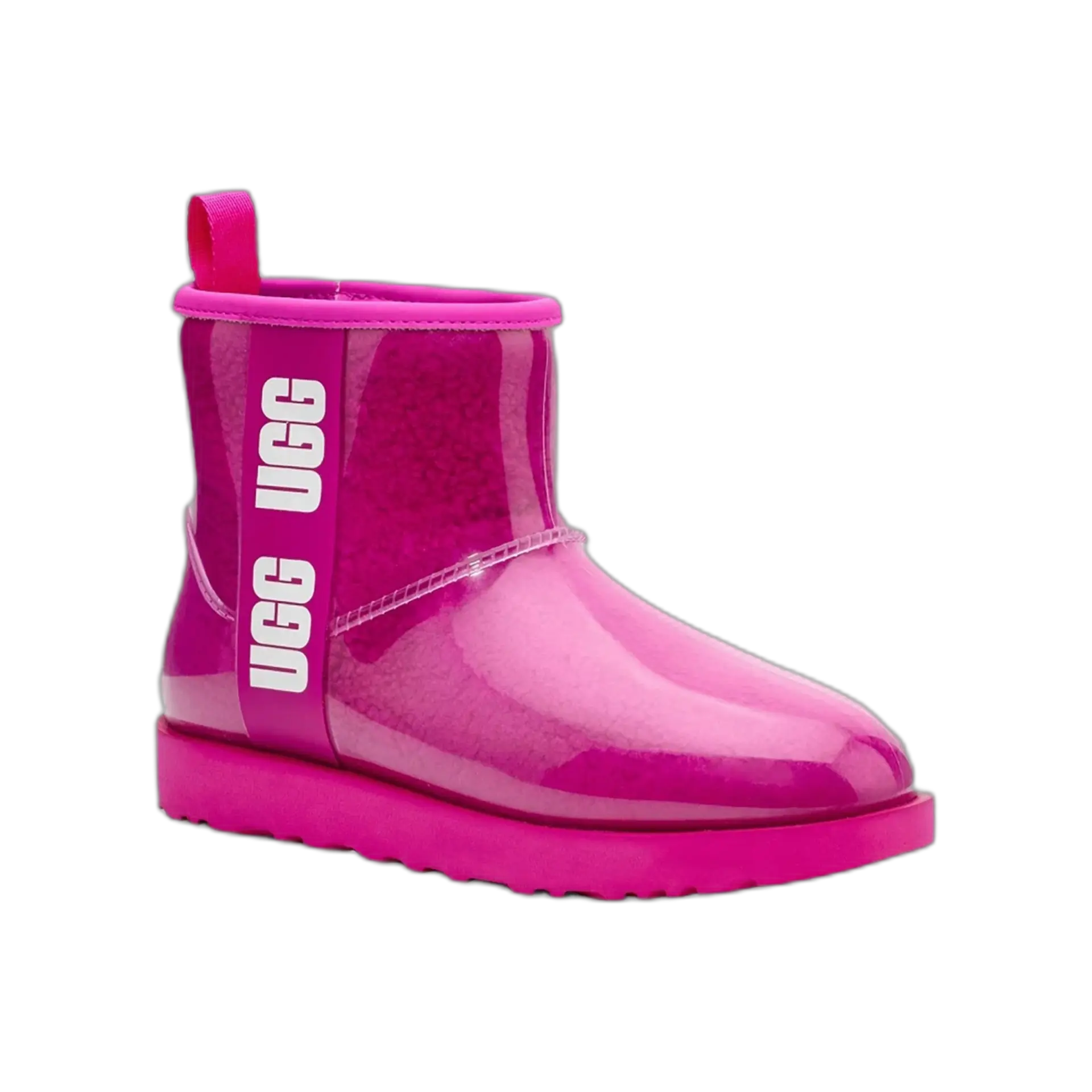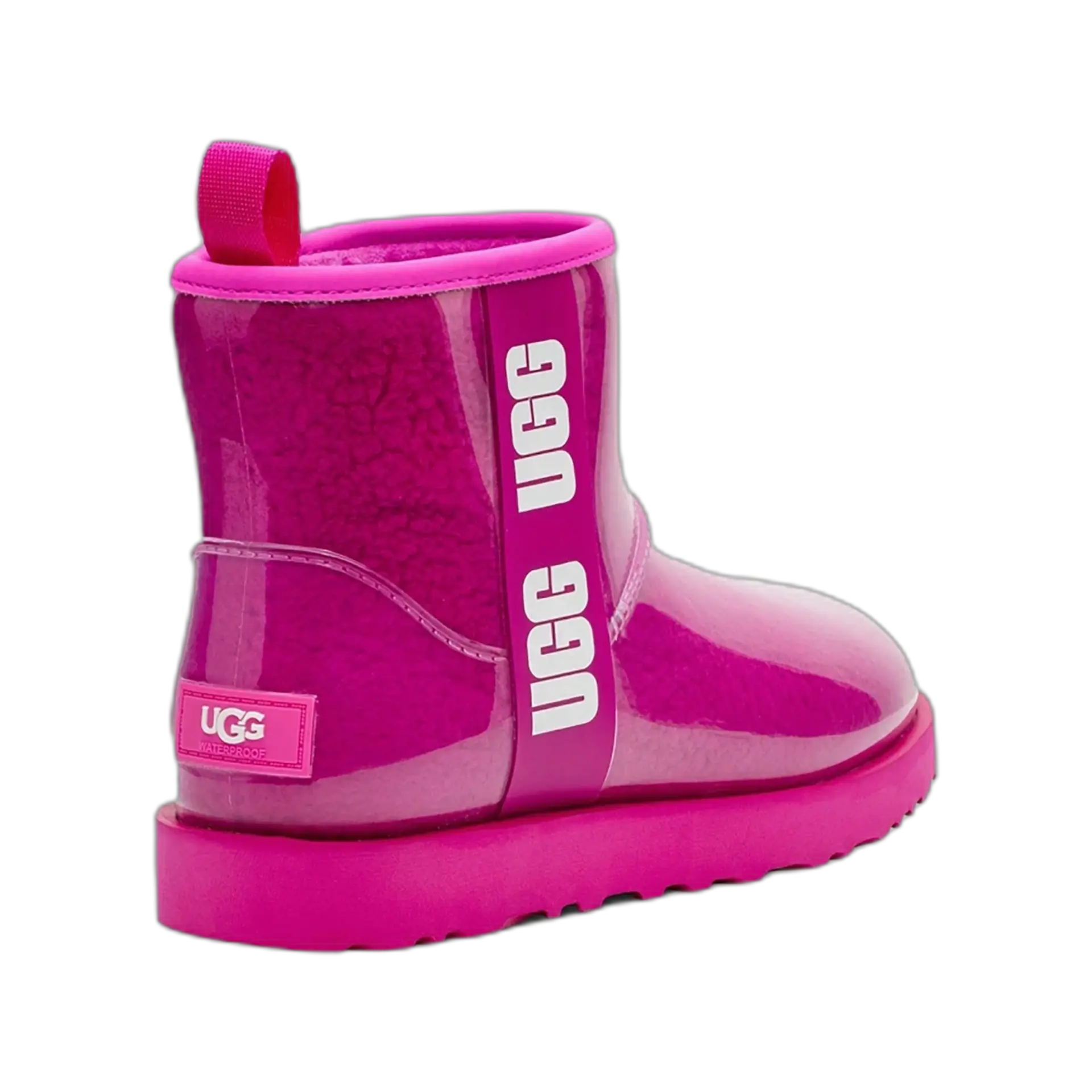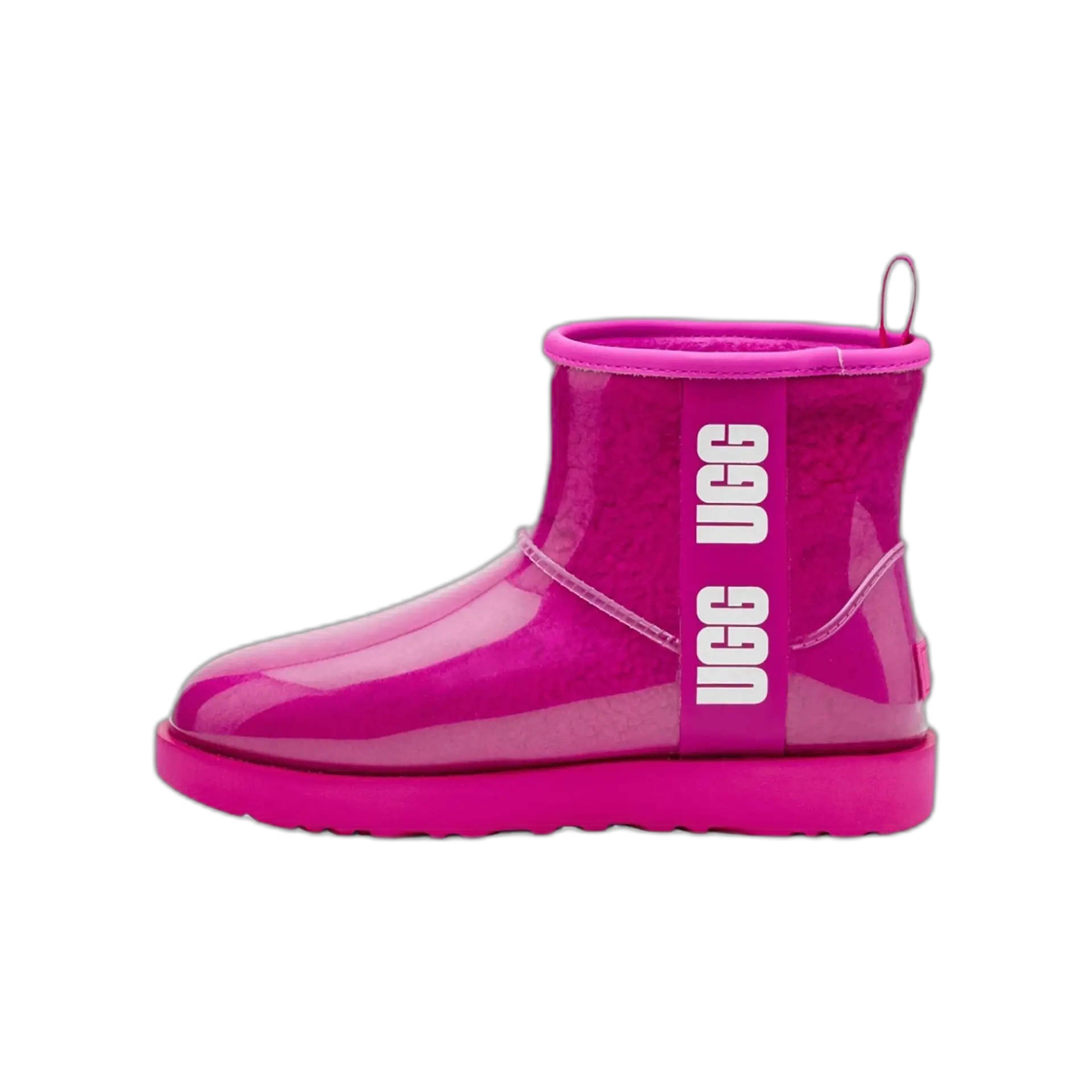 Quand l’iconique UGG rencontre la pluie, ça donne cette botte imperméable au look totalement assumé. L’extérieur en TPU transparent laisse apparaître la doublure laine bouclée ultra-confortable, pour un effet visuel unique. Résistante, chaude, audacieuse : elle traverse l’hiver avec style, que tu sois en ville ou en station.