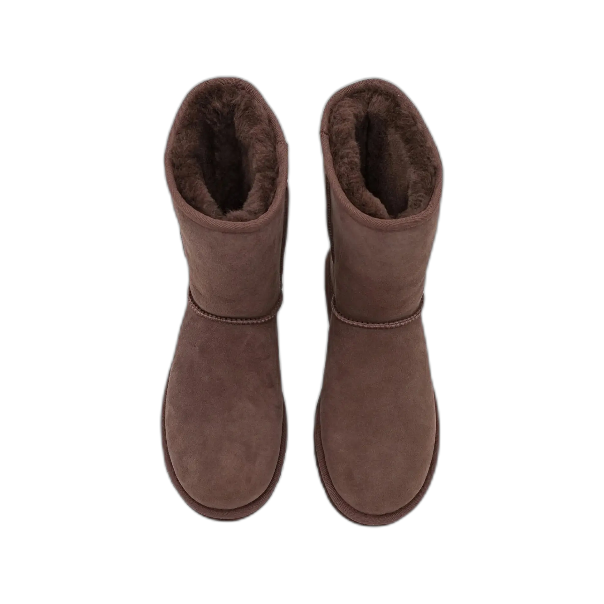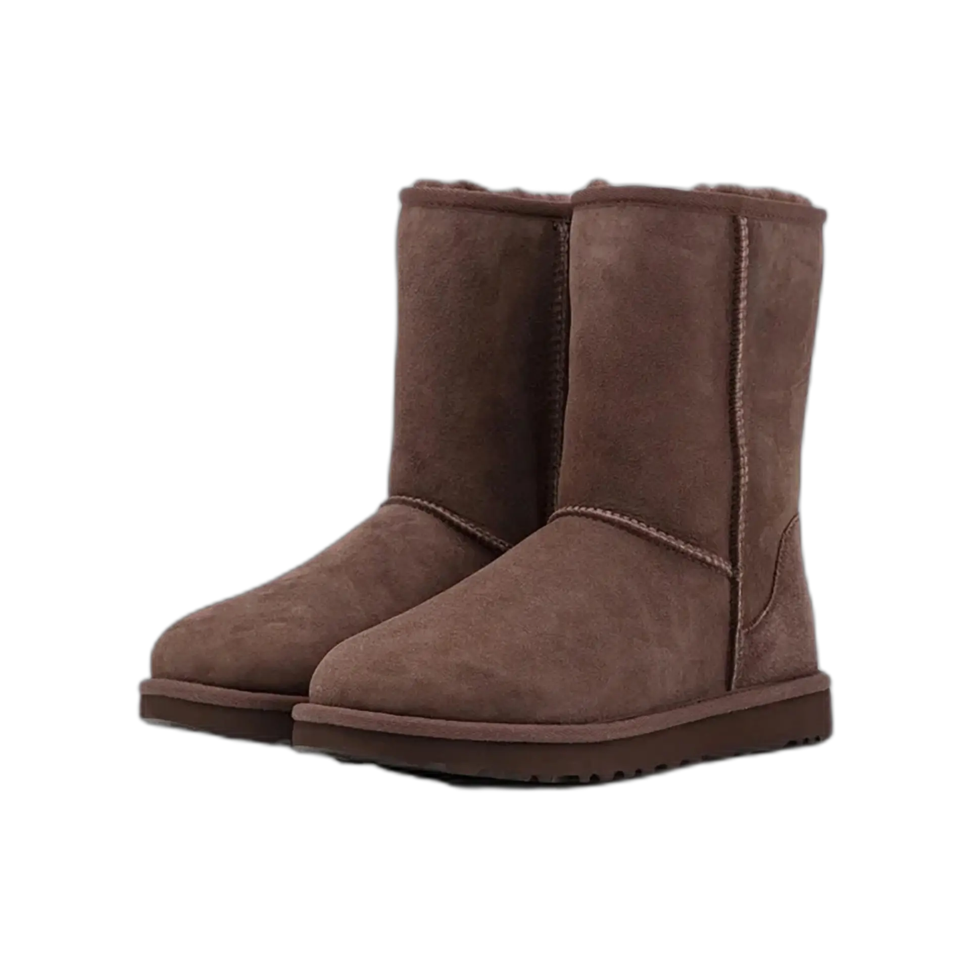 La polyvalence incarnée : cette botte mi‑haute combine une tige en daim imperméabilisée, la célèbre doublure peau de mouton UGG et une semelle antidérapante. Elle s’enfile facilement, s’adapte autant au jean qu’à la jupe et garde les pieds cosy même par grand froid. Une valeur sûre pour l’hiver urbain.