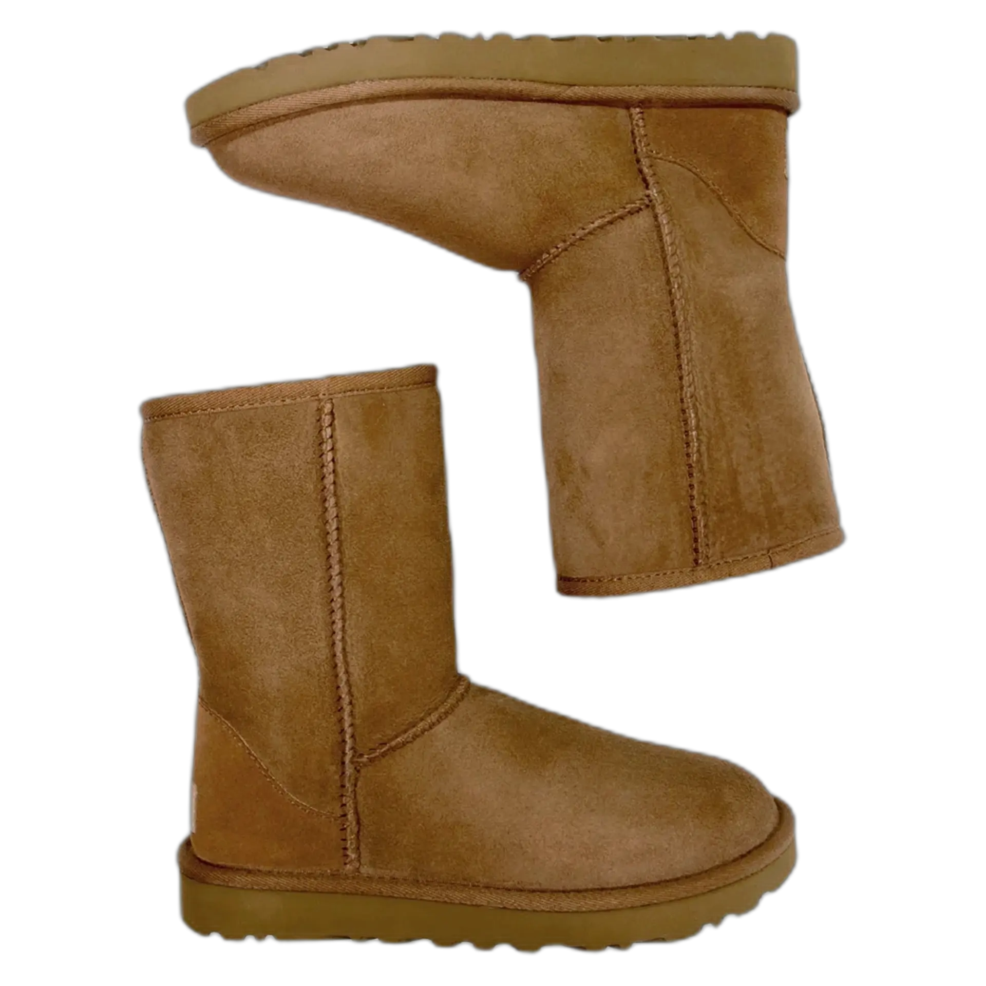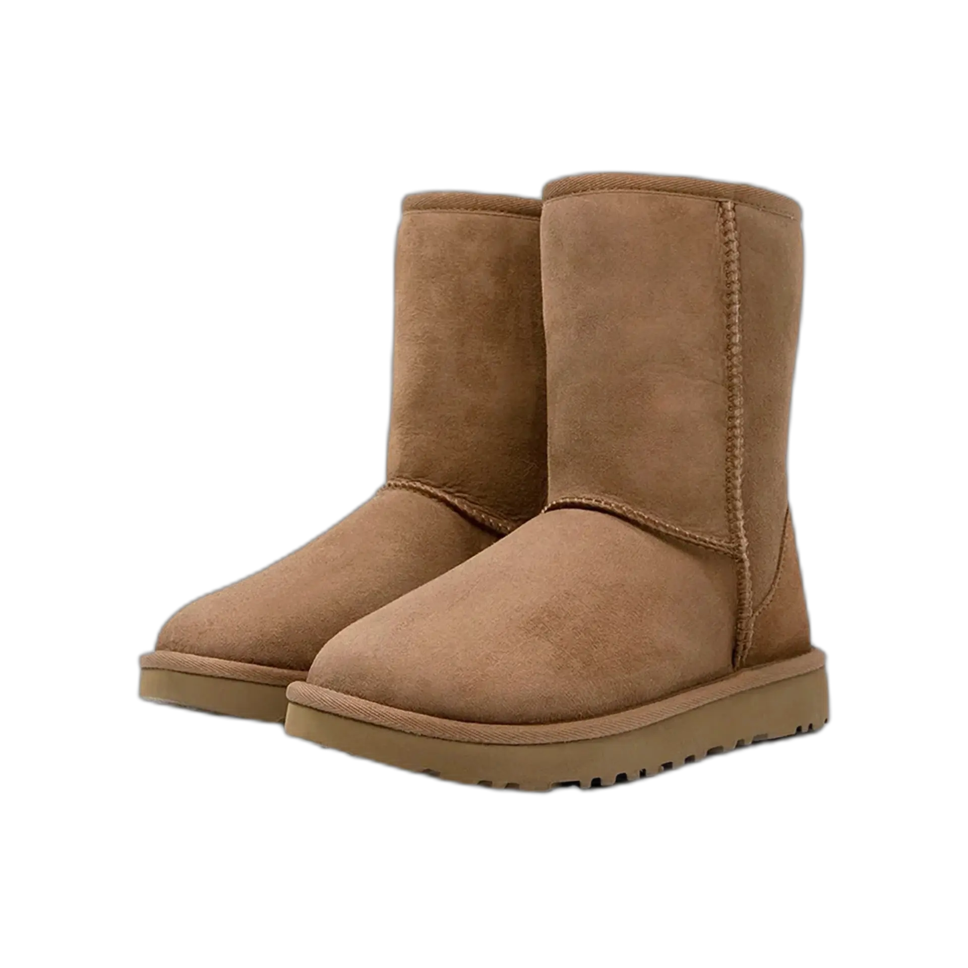 La polyvalence incarnée : cette botte mi‑haute combine une tige en daim imperméabilisée, la célèbre doublure peau de mouton UGG et une semelle antidérapante. Elle s’enfile facilement, s’adapte autant au jean qu’à la jupe et garde les pieds cosy même par grand froid. Une valeur sûre pour l’hiver urbain.